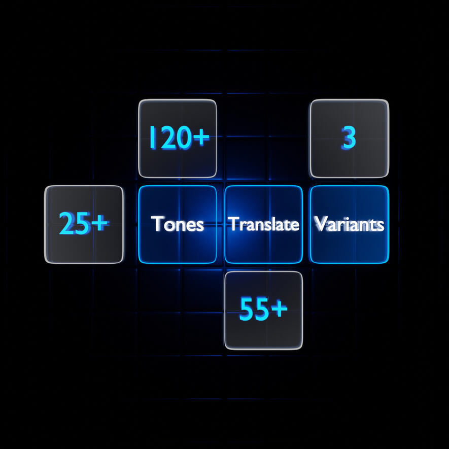 Customize your generations using the tone/voice controls from over 120+ tuned settings.